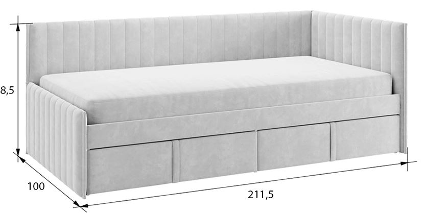 Кровать - тахта «Твикс» с ящиками размером 90x200 см в цвете «мята» (велюр) — это стильное и функциональное решение для спальни или детской комнаты