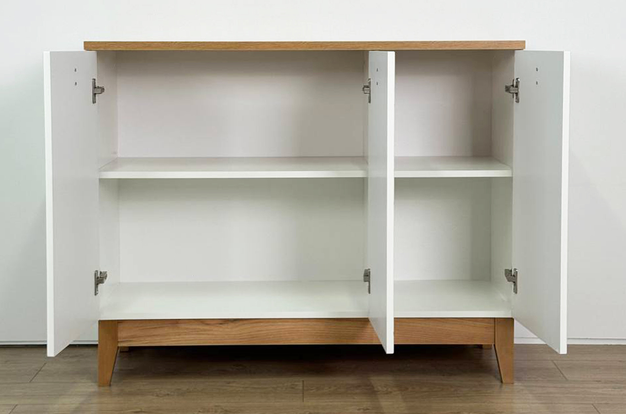 Классический трехдверный комод в скандинавском стиле. Модель отличается лаконичным дизайном, продуманной конструкцией и использованием качественных материалов. Идеально подходит для организации хранения в спальне, гостиной или прихожей.
