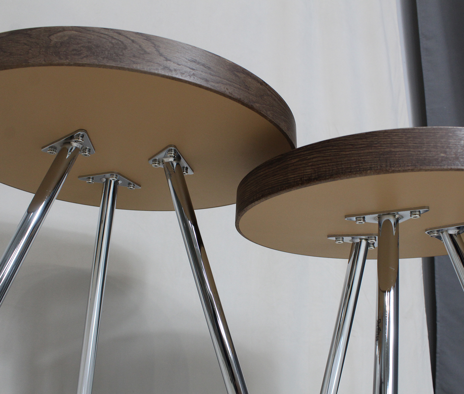 Столешницы выполнены из высоскокачественной гнутой фанеры. Металлические хромированные каркасы устойчивы к механическому воздействию.