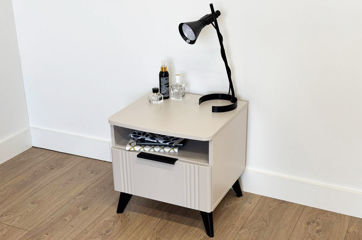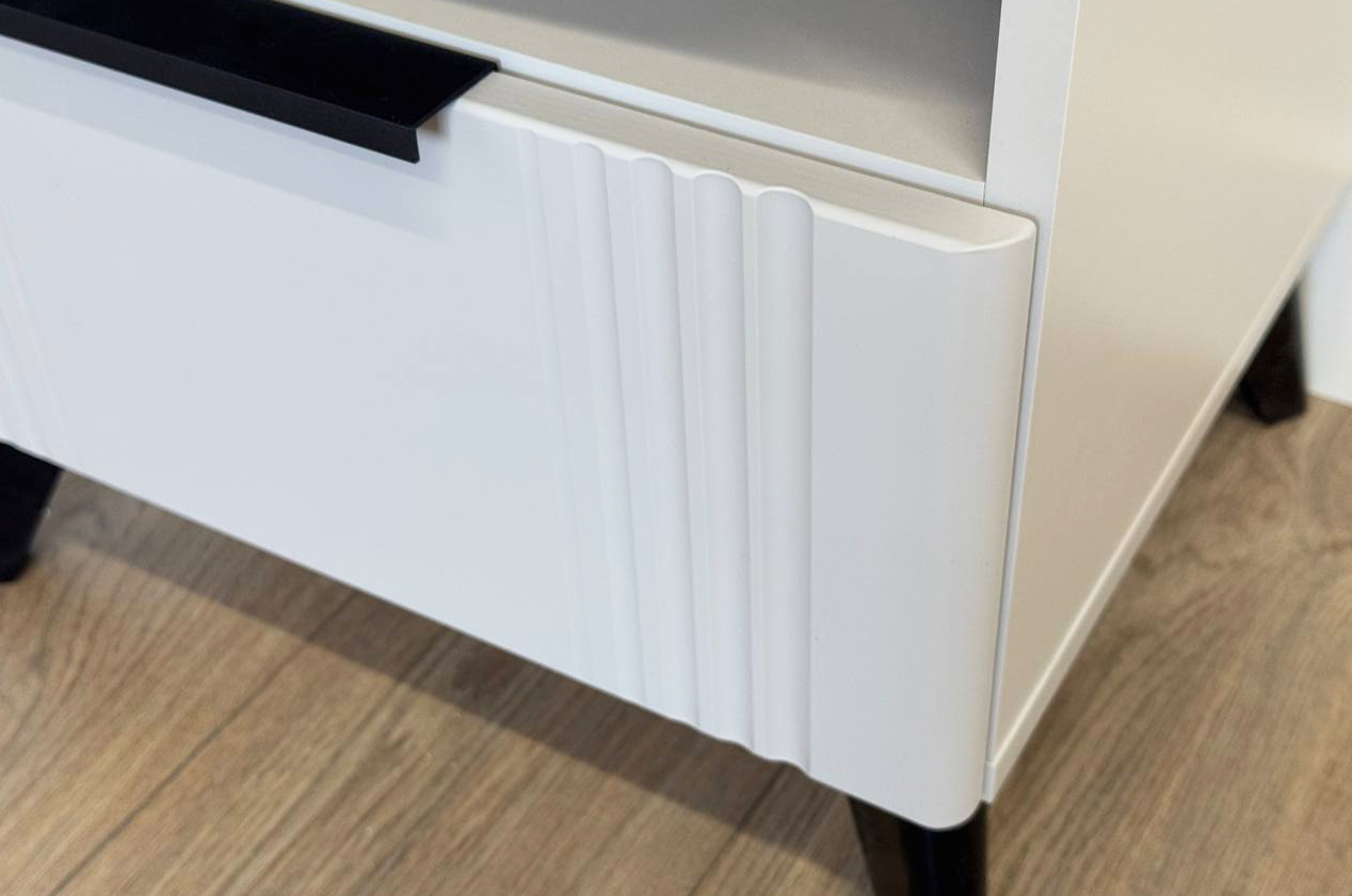 · Подойдет к любому интерьеру: Нежный бежевый цвет и элегантный контраст с черными ножками делают тумбу стильным акцентом в любом интерьере.