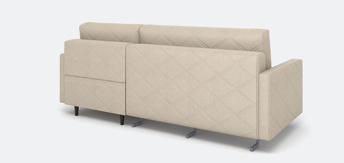 Угловой диван «Лондон» — это воплощение скандинавского подхода к дизайну: лаконичные формы, продуманная эргономика и максимальный комфорт. Модель украшена оригинальной ромбовидной стежкой чехлов, которая не только придает дивану выразительность, но и предотвращает растяжение ткани, сохраняя безупречный вид долгие годы.