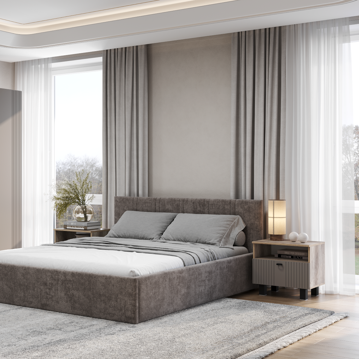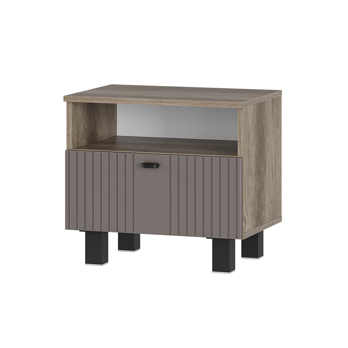 Прикроватная тумба «Олива» ТБ-14 — это идеальный компаньон для вашей спальни. Компактная, но вместительная, она поможет создать уютный и организованный уголок рядом с кроватью. Лаконичный дизайн с матовым фасадом цвета «муссон софт» и геометрией корпуса «дуб каньон» дополнит любой интерьер — от классики до современного минимализма. Удобный выдвижной ящик на шариковых направляющих и открытая ниша с крючком позволят всегда держать под рукой нужные мелочи.