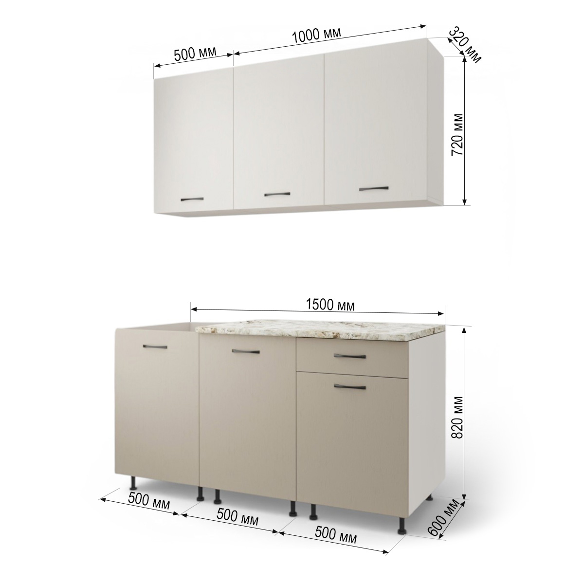 —Кухонный гарнитур №2/1 Кашемир/Дуб Латте/Дуб Мокко