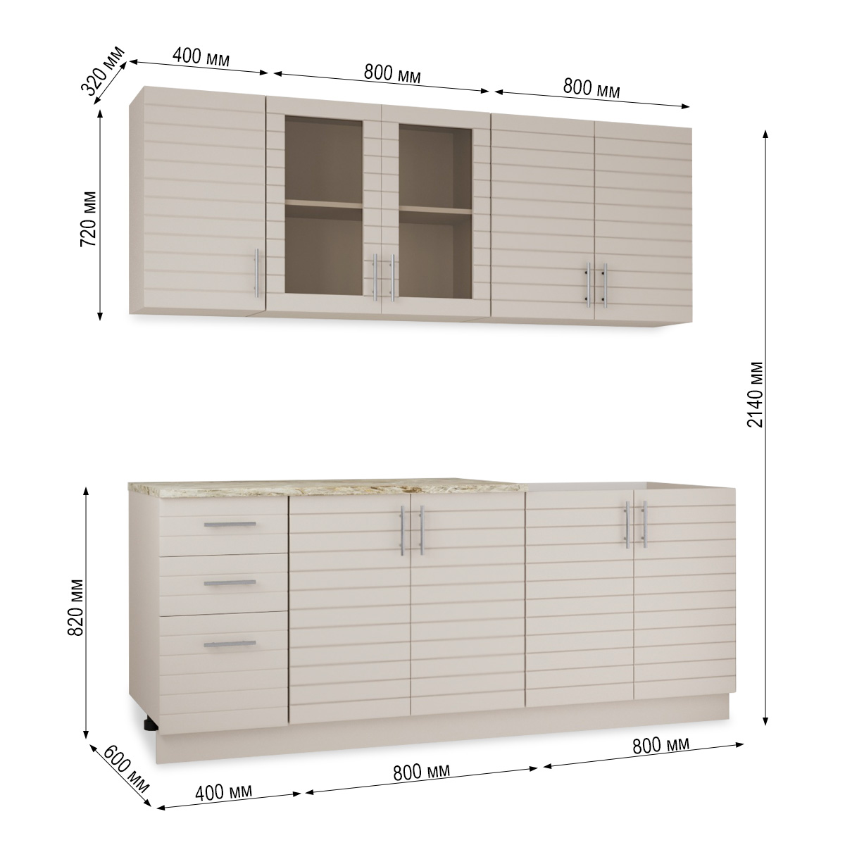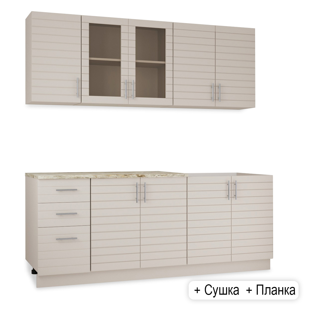 Кухня Комплект №9 Кашемир/Кашемир (столеш Версаль+Сушка+Планка) 2,0м