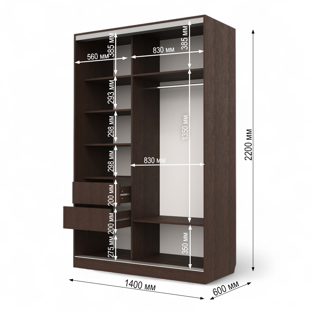 —Шкаф-купе Клэр 1400х597х2200 с ящ/венге-хром