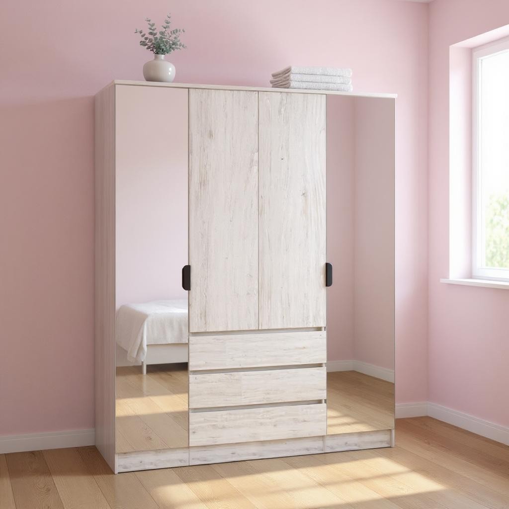 Шкаф ВЕНСЕН Сосна Лофт 4-х дв., 3 ящ, Зеркало / Сосна Лофт