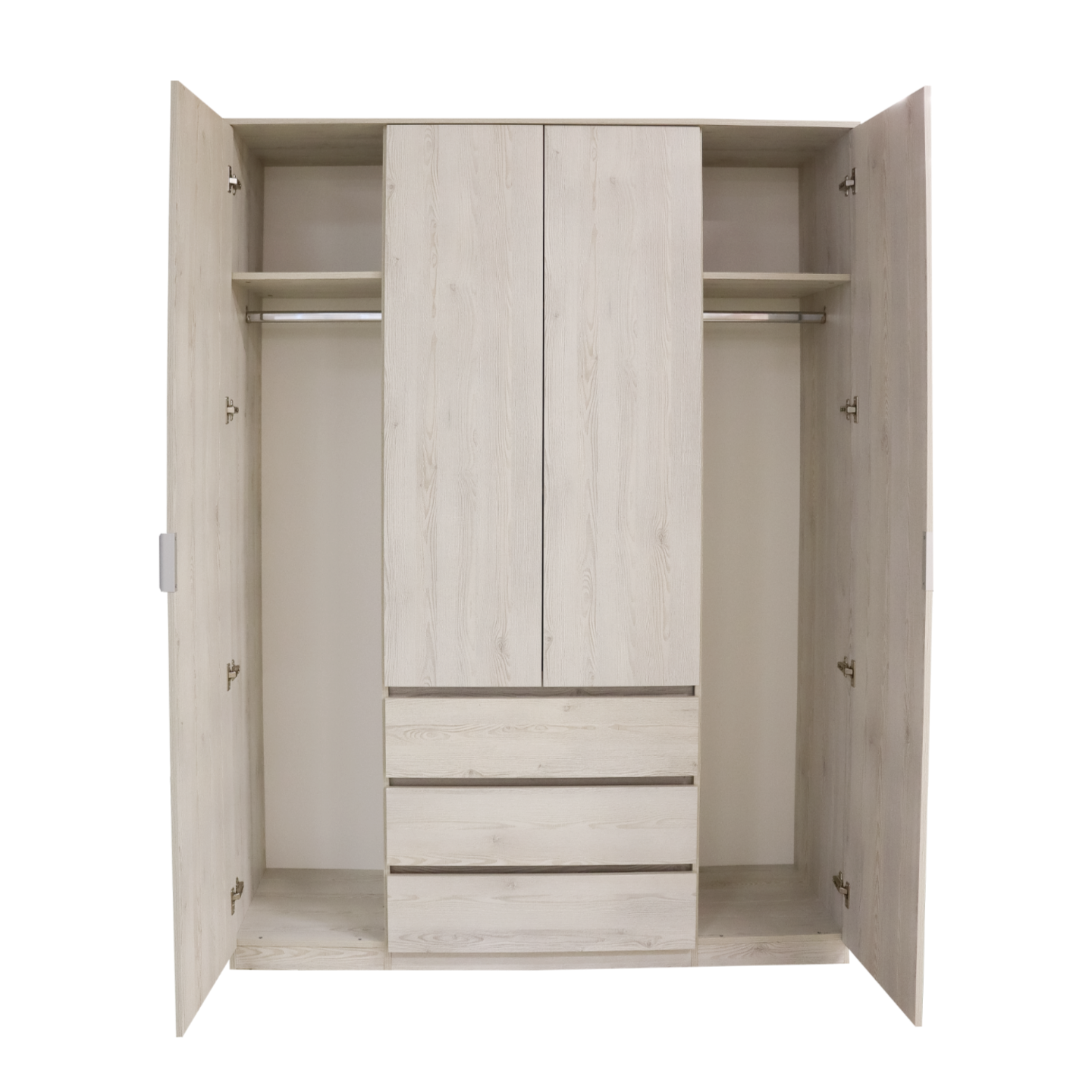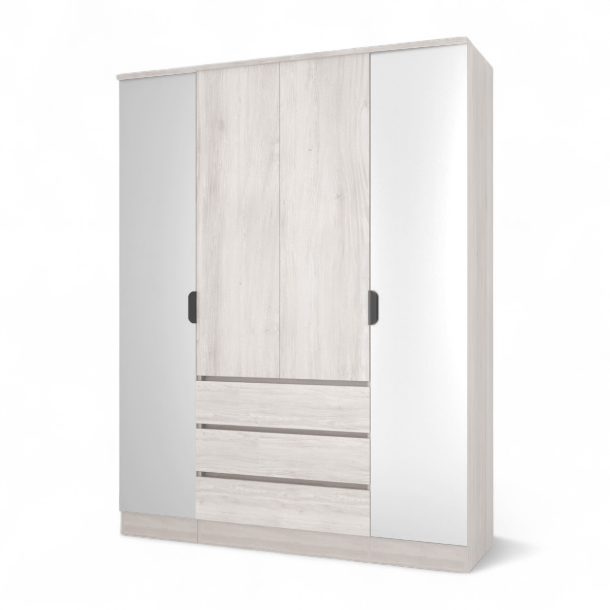 —Шкаф ВЕНСЕН Сосна Лофт 4-х дв., 3 ящ, Зеркало / Сосна Лофт